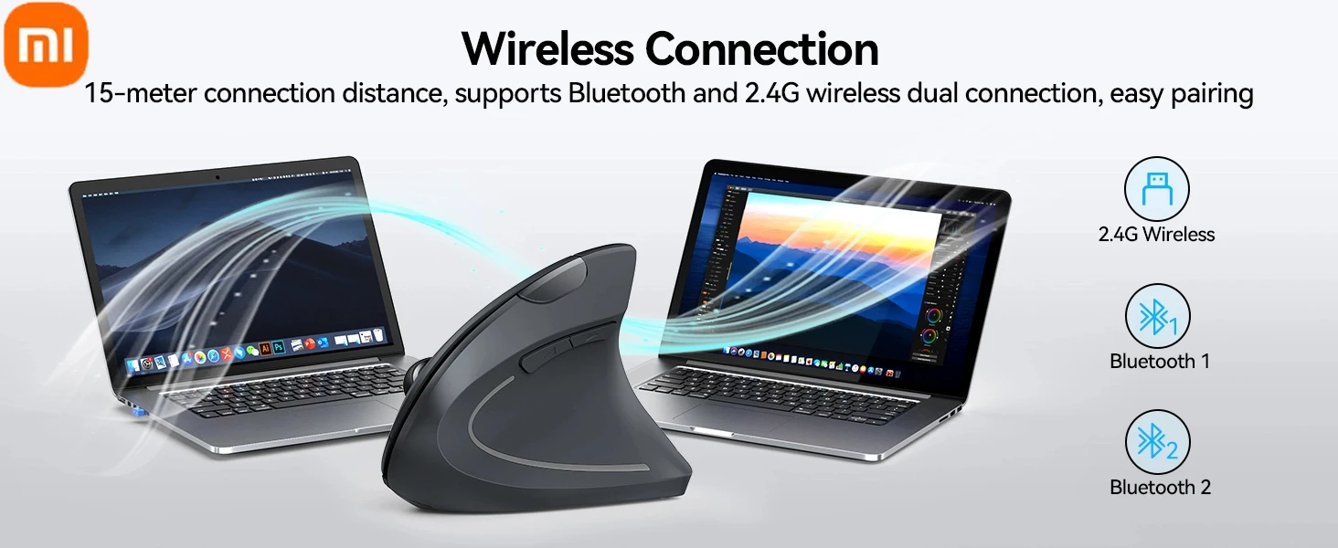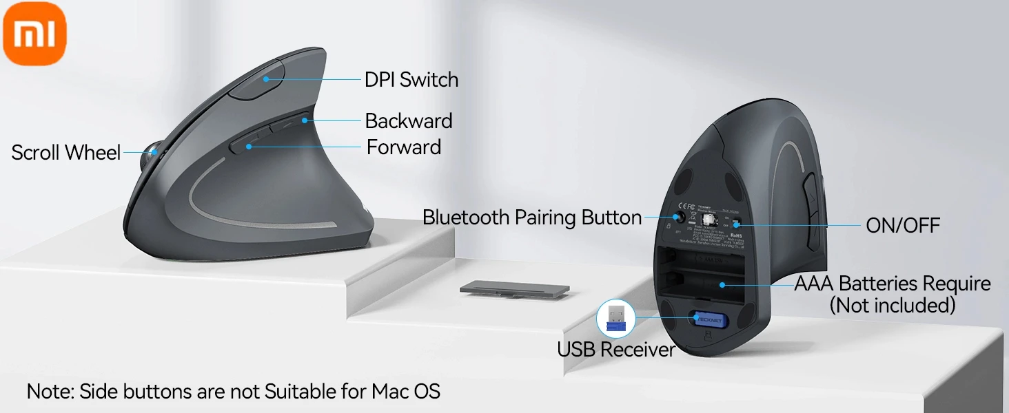 Mouse ergonômico O design do mouse ergonômico sem fio vertical se adapta ao tamanho e contorno da palma da mão, reduzindo a pressão na palma da mão e tornando o controle do mouse sem fio mais confortável e natural, mais adequado para mãos grandes e médias Plug and play O mouse sem fio vem com um receptor USB Nano, conecte e reproduz diretamente. A tecnologia sem fio de 2,4 GHz garante uma distância de trabalho mais longa, até 33 pés em 360 graus sem interferência